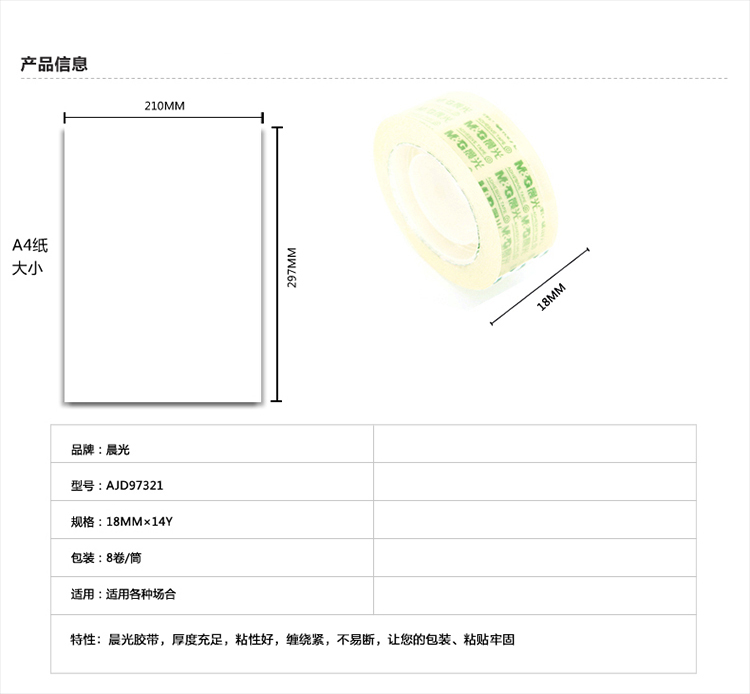 • 商品名稱:晨光(M&G)18mm*14y高透易撕便攜小膠帶 8卷裝AJD97321