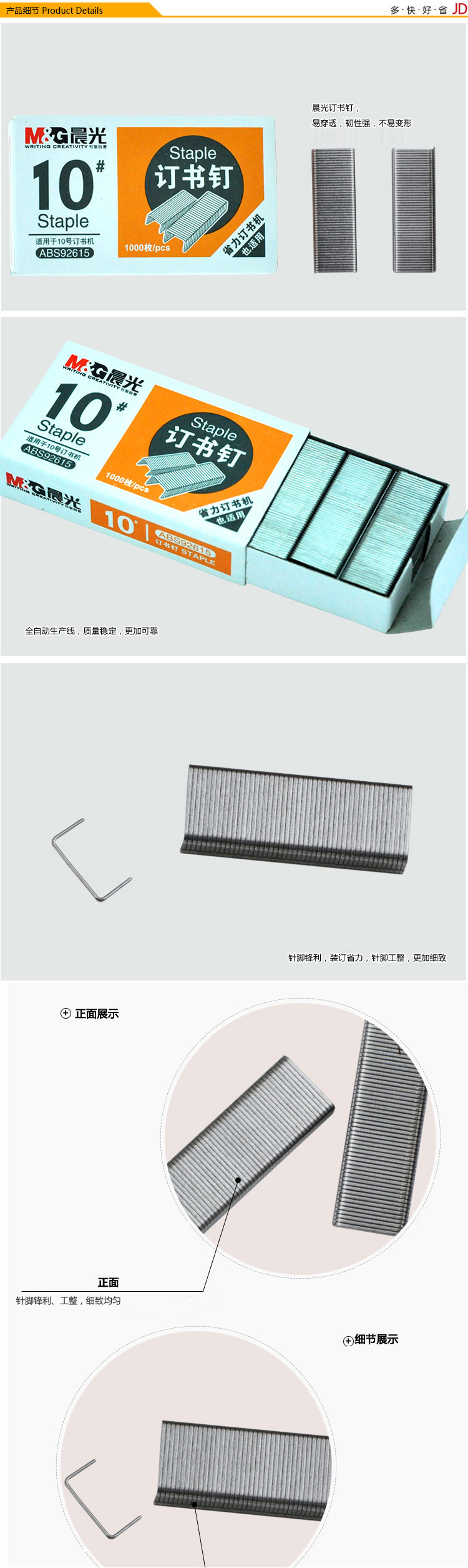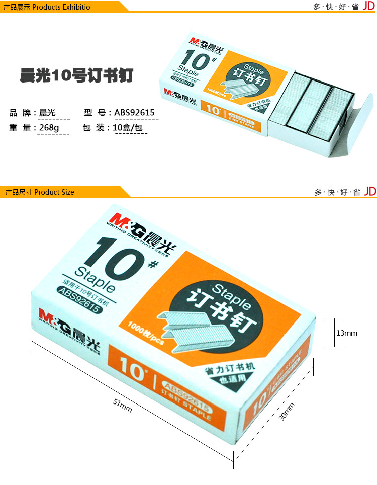 • 商品名稱:晨光(M&G)高強(qiáng)度訂書釘10#1000枚/盒 10盒裝ABS92615