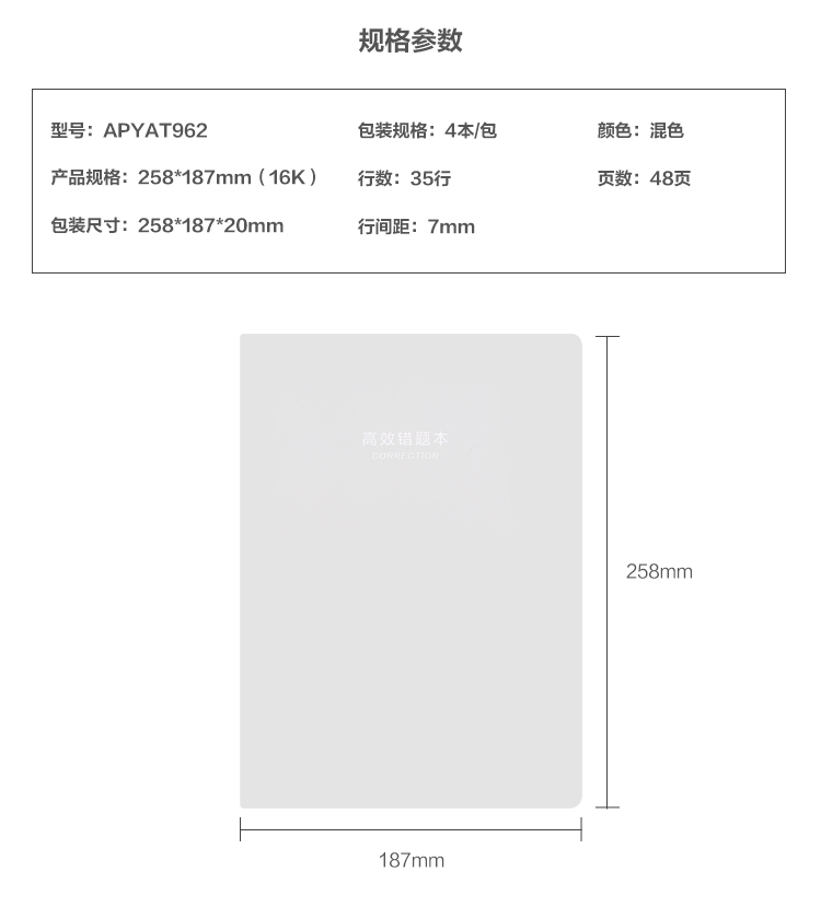 • 商品名稱:晨光(M&G)優(yōu)品系列16K/48頁錯題本縫線軟抄記事本日記筆記本子 4本裝APYAT962