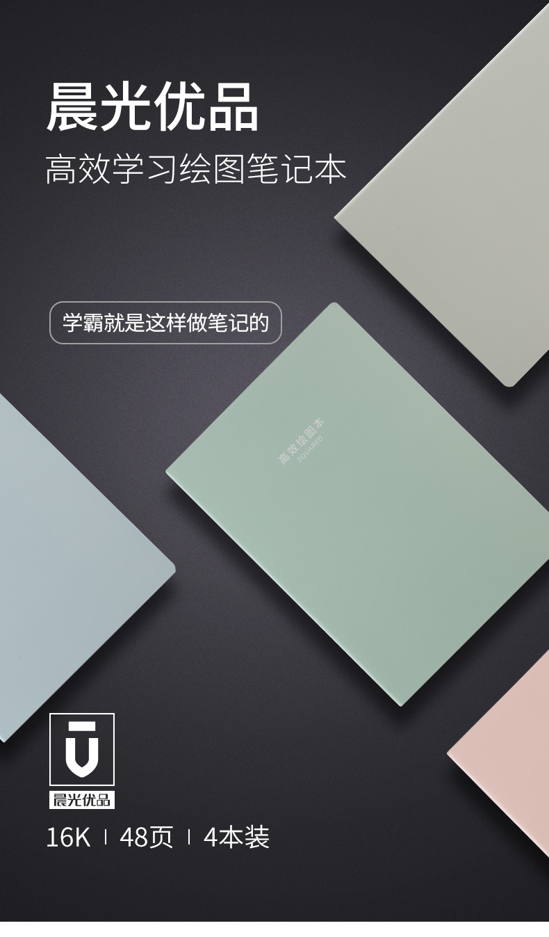 • 晨光(M&G)優(yōu)品系列16K/48頁(yè)學(xué)生高效繪圖本縫線(xiàn)軟抄本 4本裝APYAT963