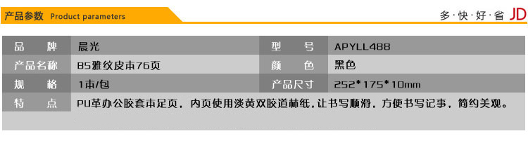 • 商品名稱:晨光(M&G)B5/76頁黑色皮面軟抄本記事日記筆記本子 單本裝APYLL488
