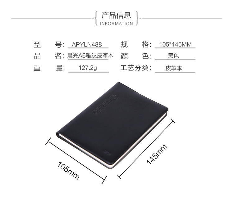 • 商品名稱:晨光(M&G)A6/100頁(yè)黑色皮面軟抄本記事日記筆記本子 單本裝APYLN488
