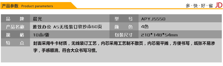 • 商品名稱:晨光(M&G)A5/60頁軟抄本無線裝訂記事日記筆記本子 10本裝APYJS550