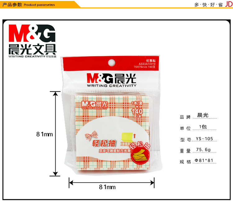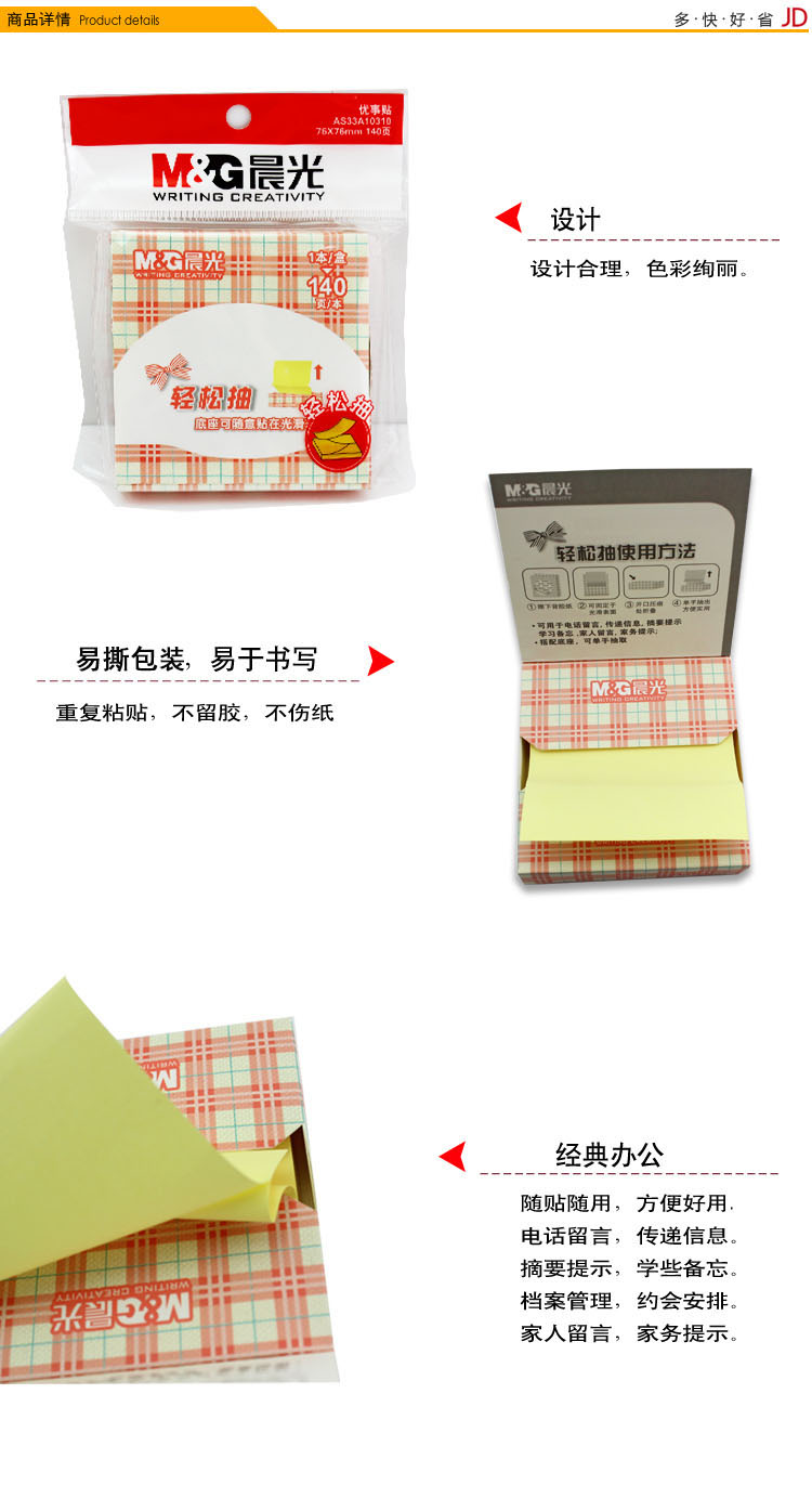 • 商品名稱:晨光(M&G)140頁/76*76mm便利便簽條百事貼留言便簽紙優(yōu)事備忘貼 單本裝YS-105