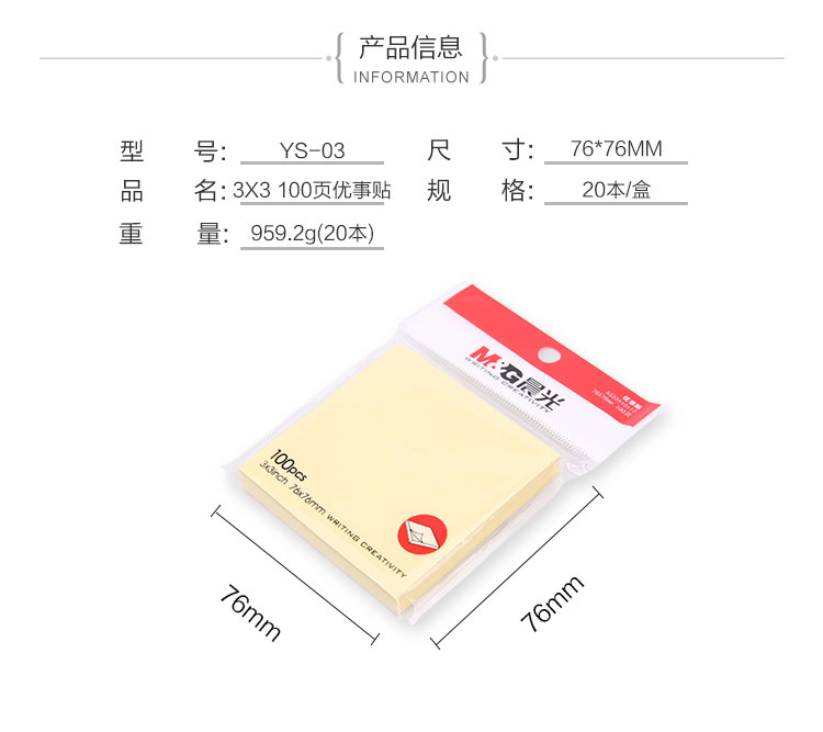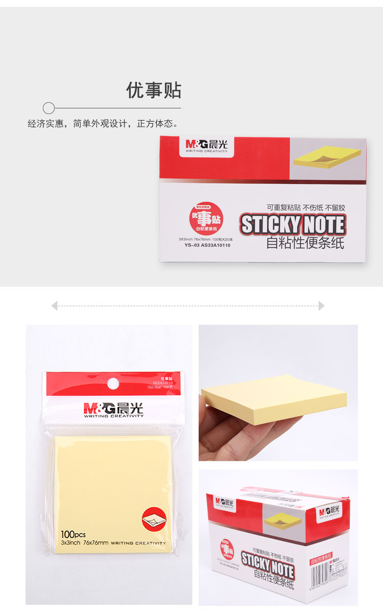 • 商品名稱:晨光(M&G)100頁(yè)/76*76mm便利便簽條百事貼留言便簽紙優(yōu)事備忘貼 20本裝YS-03