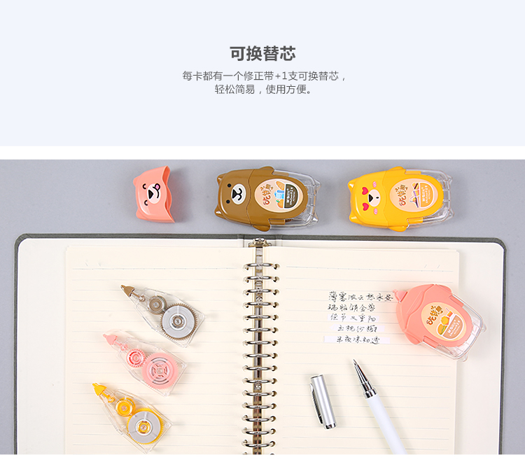 • 晨光(M&G)ACT56401 吃貨熊修正帶改正帶涂改帶8m+可換芯8m 12個裝