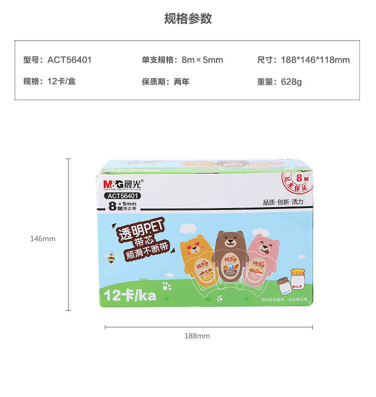 • 商品名稱:晨光(M&G)ACT56401 吃貨熊修正帶改正帶涂改帶8m+可換芯8m 12個裝