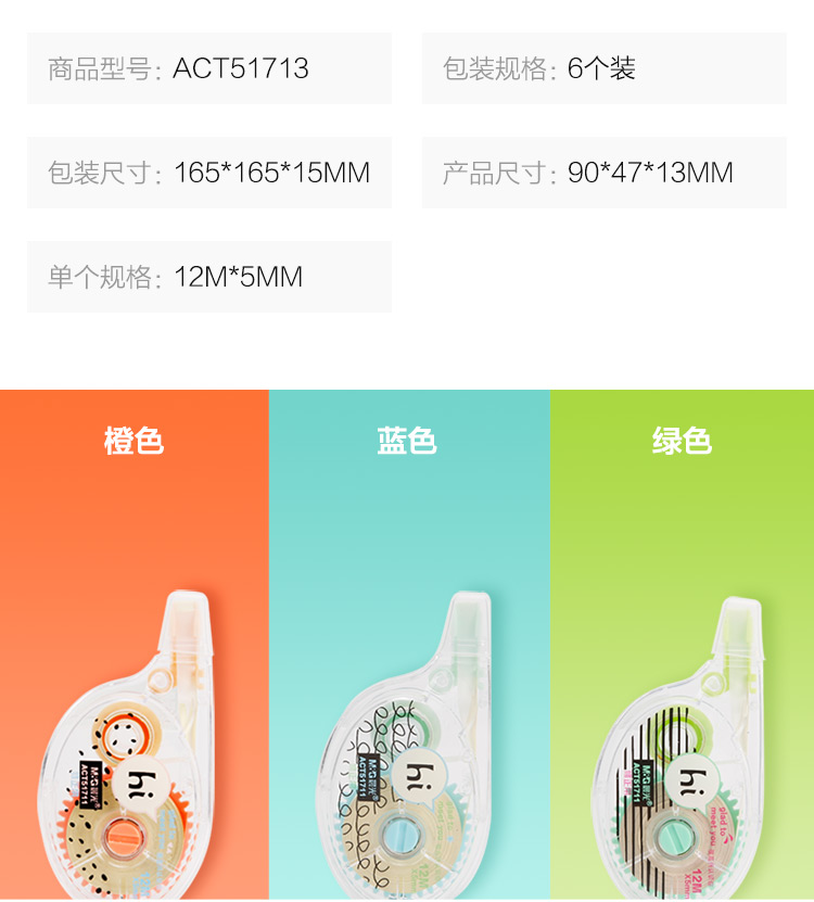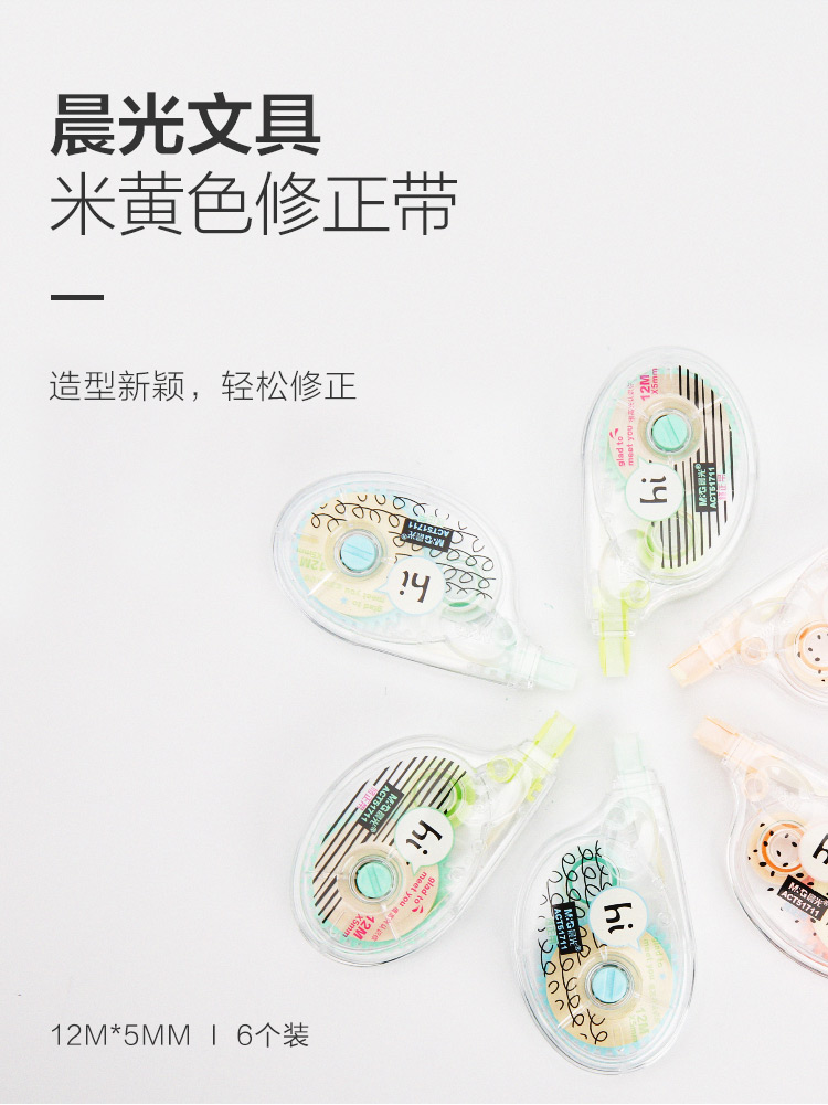 • 商品名稱:晨光(M&G)文具學(xué)生修正帶改正涂改帶12m*5mm*6個(gè)米黃色帶芯 ACT51713