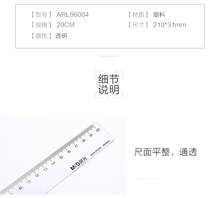 • 商品名稱:晨光(M&G)ARL96004 辦公學(xué)習(xí)繪圖制圖刻度塑料直尺20cm
