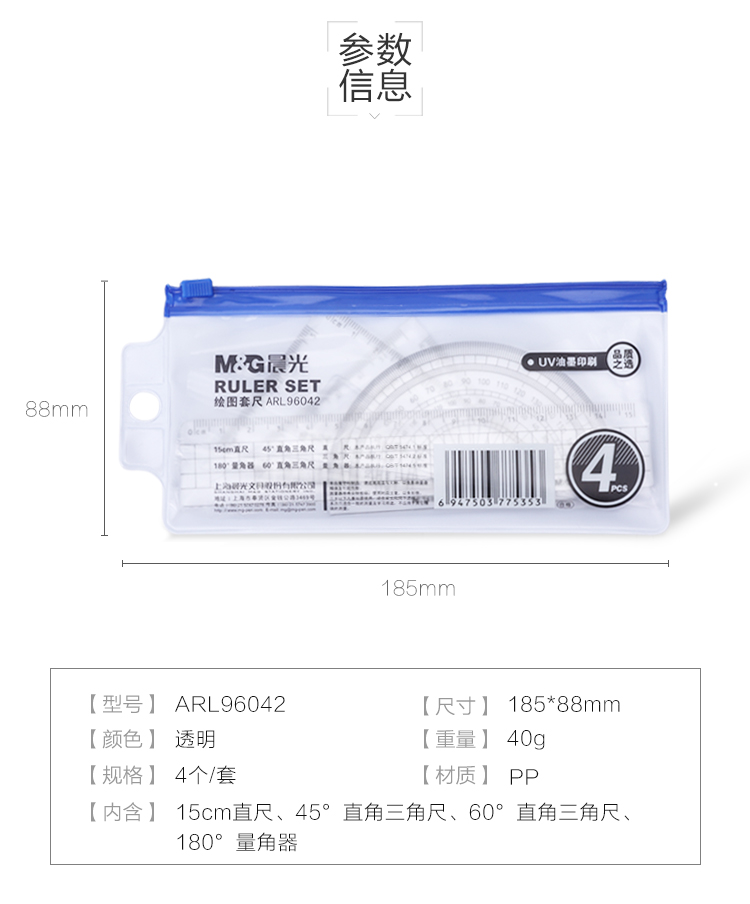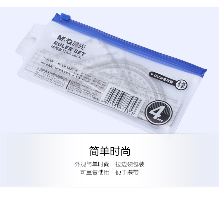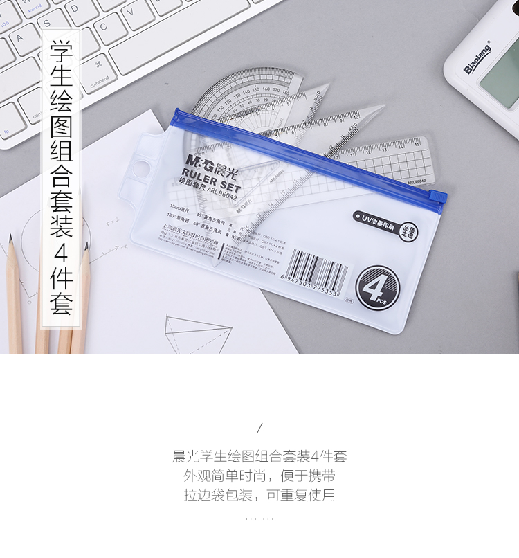 • 商品名稱:晨光(M&G)ARL96042 學(xué)生直尺三角尺量角器繪圖組合套尺4件套