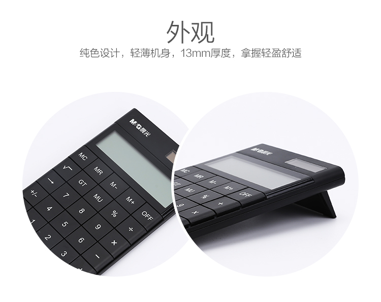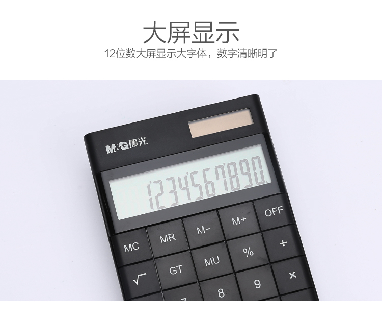 • 商品名稱:晨光(M&G)時尚黑色無縫按鍵平板式計算器 雙電源ADG98719
