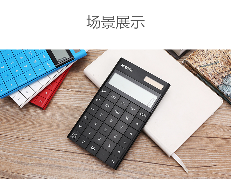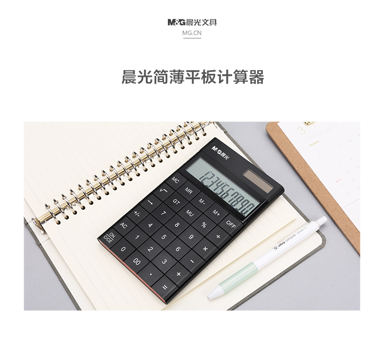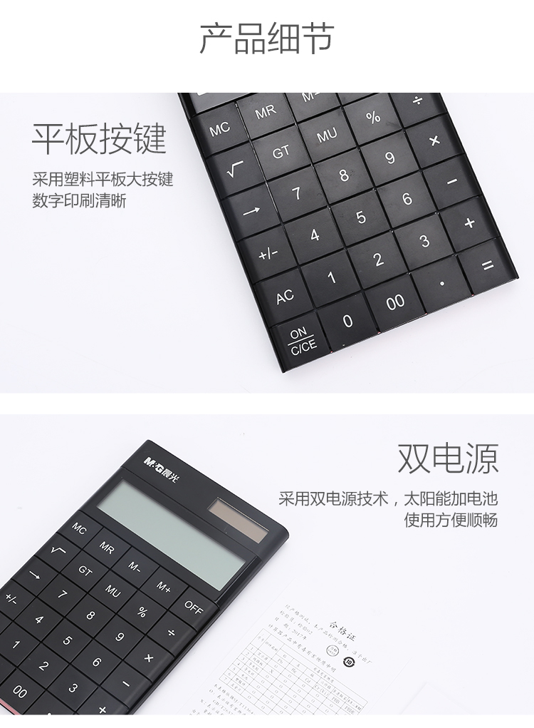 • 晨光(M&G)時尚黑色無縫按鍵平板式計算器 雙電源ADG98719