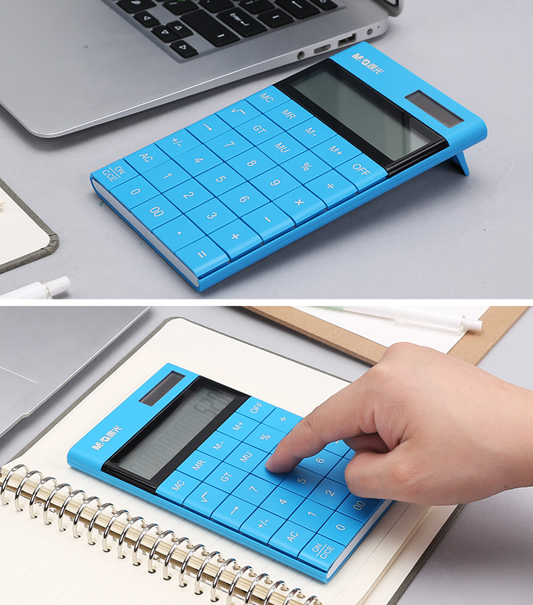• 晨光(M&G)時(shí)尚藍(lán)色無(wú)縫按鍵平板式計(jì)算器 雙電源ADG98719