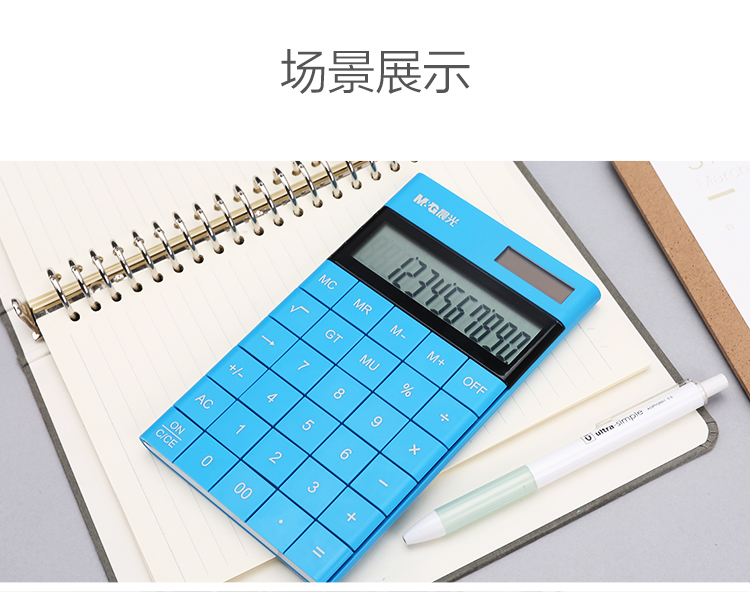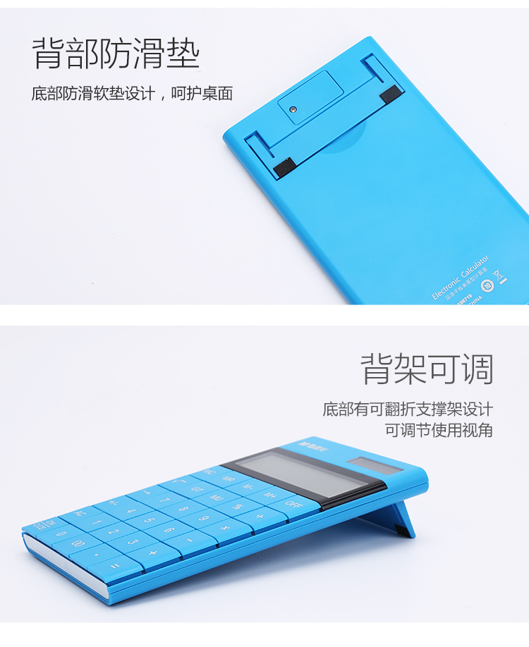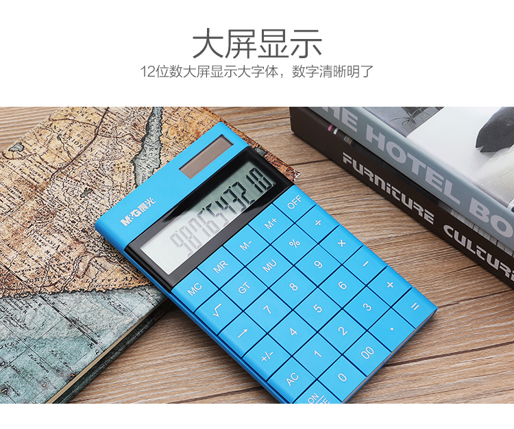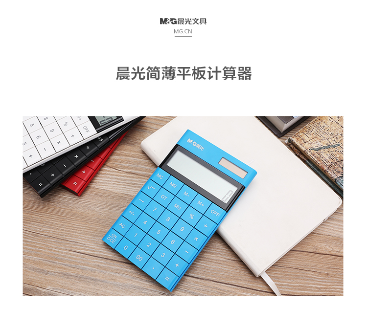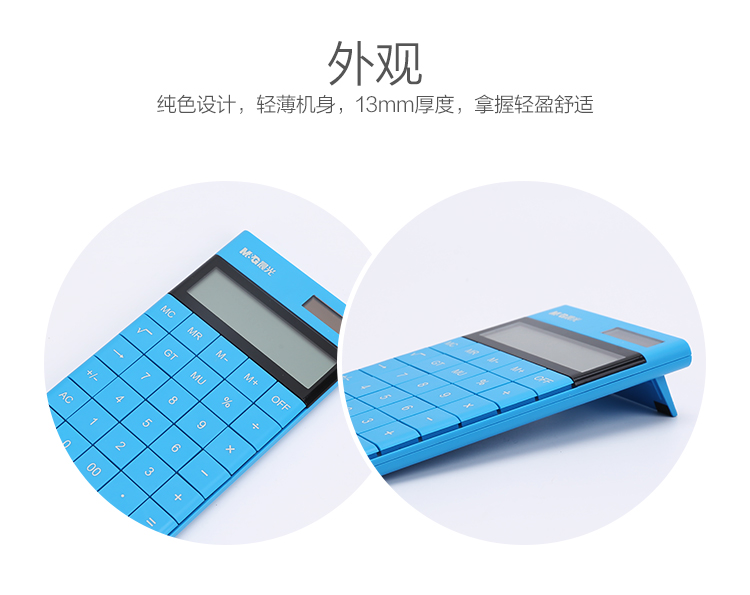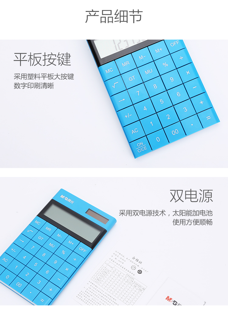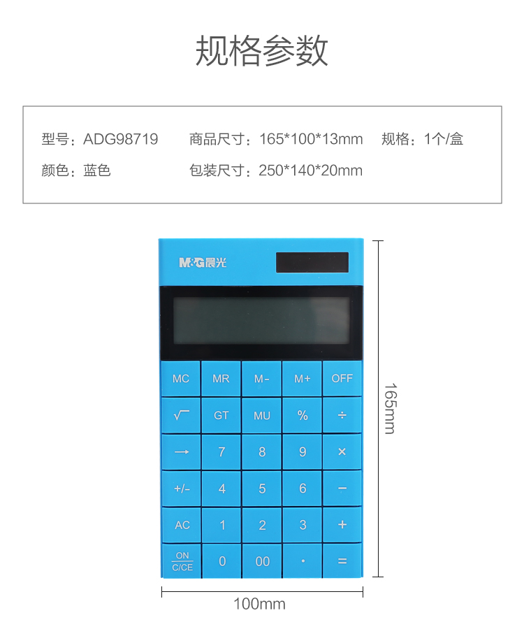 • 商品名稱:晨光(M&G)時(shí)尚藍(lán)色無(wú)縫按鍵平板式計(jì)算器 雙電源ADG98719