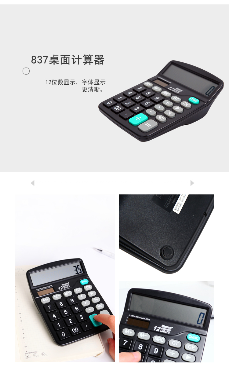 • 商品名稱:晨光(M&G)837雙電源桌面通用辦公計(jì)算器 12位大屏幕ADG98189