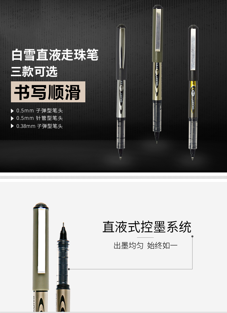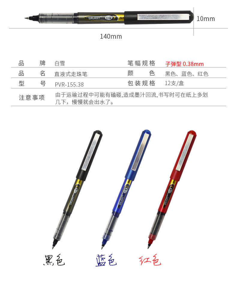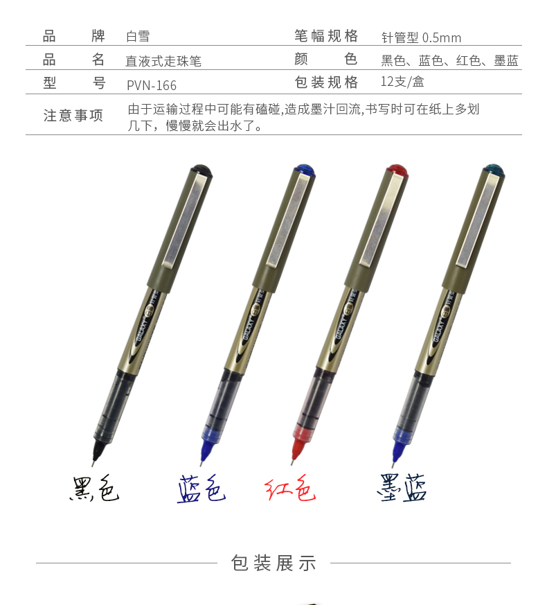 • 商品名稱:白雪(snowhite)0.5mm黑色直液式走珠筆中性筆簽字筆水筆 12支/盒PVN-166